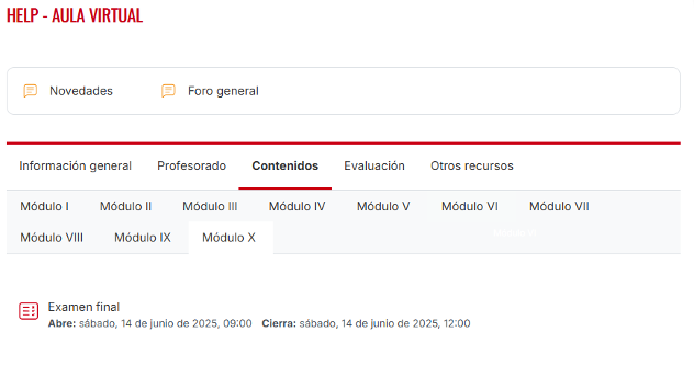 Cuando hayas terminado de configurar el examen guarda los cambios y regresa a la asignatura. El examen debe mostrarse de una manera similar a esta: